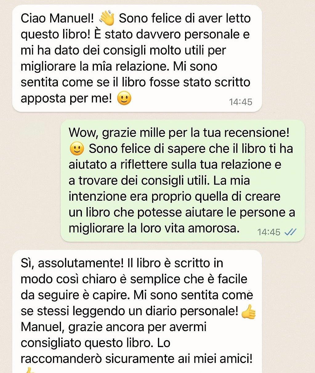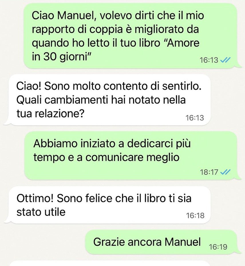 Marta dopo pochi giorni dall'acquisto del nostro manuale è riuscita a migliorare la sua comunicazione col proprio partner avvicinandosi sempre di più