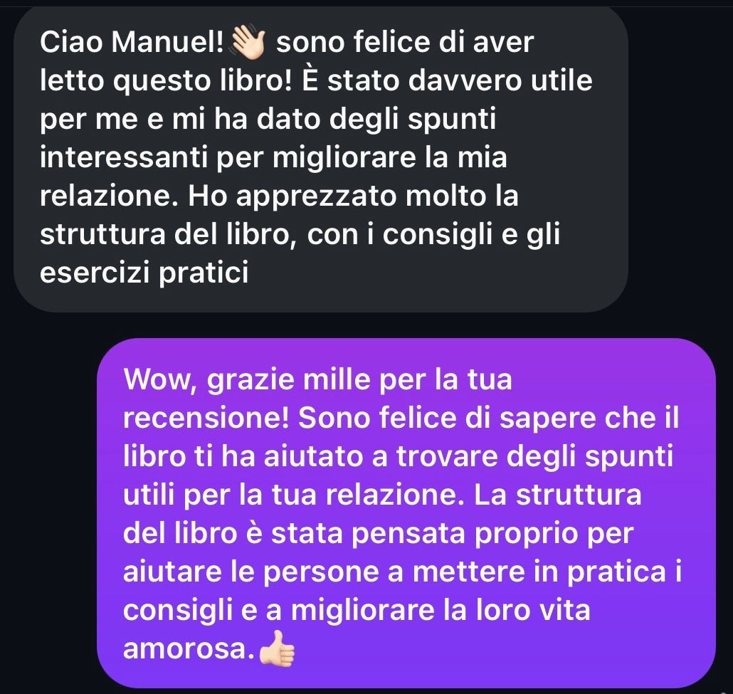 Giulia grazie al nostro manuale e riuscita a migliorare la comunicazione e si è riavvicinata col suo compagno